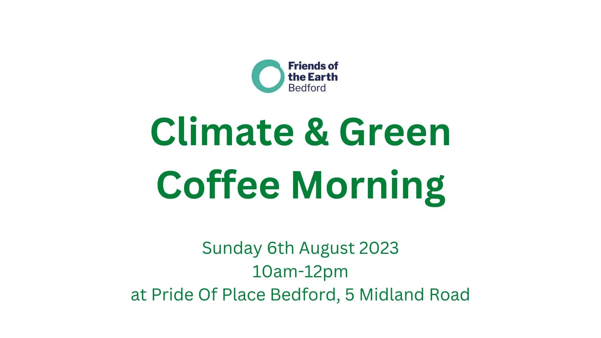 Join us for a Climate Coffee Morning at Pride Of Place Bedford hosted by Friends of the Earth Bedford.
